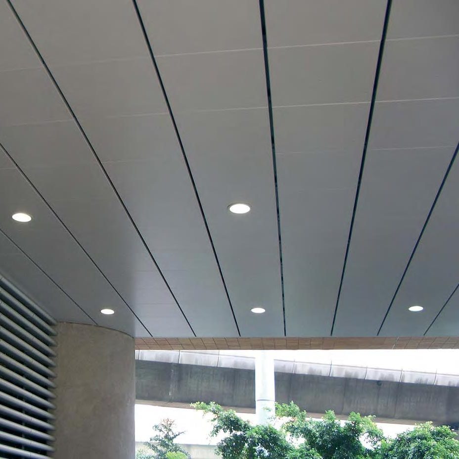 | System | Freigespanntes Flursystem für Metall-Langfeldplatten mit abgedeckter Schattenfuge |